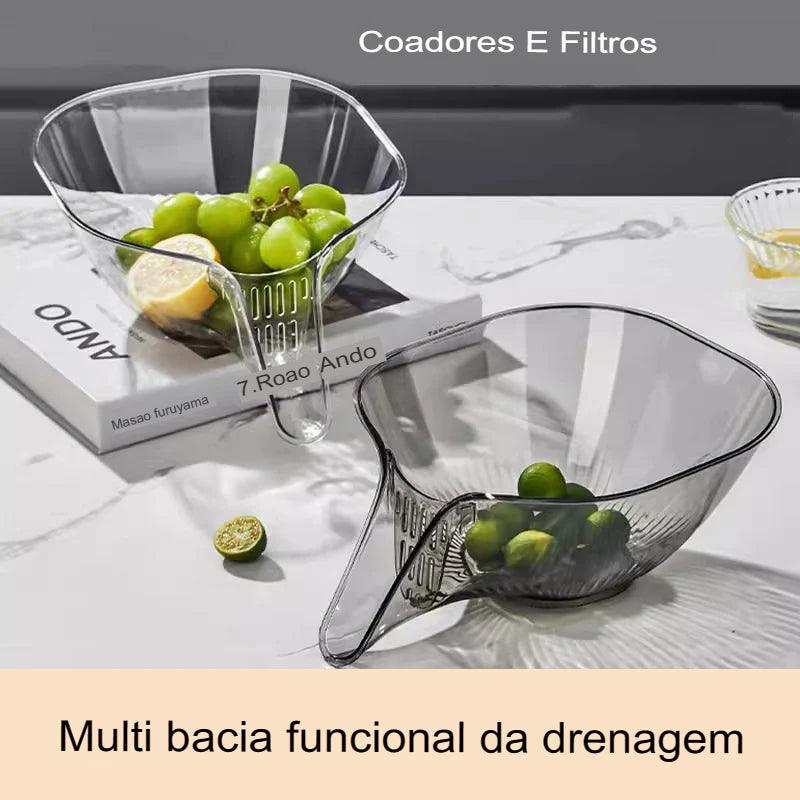 Descubra a praticidade e elegância da nossa Tigela 2 em 1! Simplifique sua rotina na cozinha com esta peça versátil que combina lavagem e armazenamento de frutas de forma inteligente.